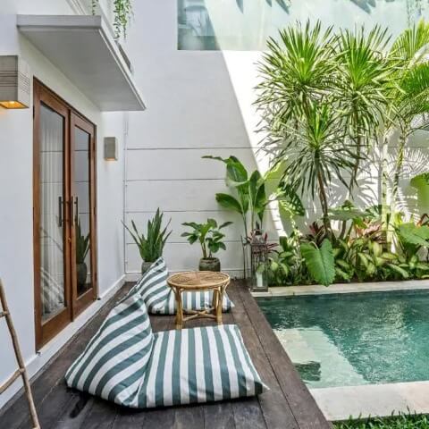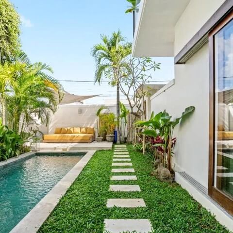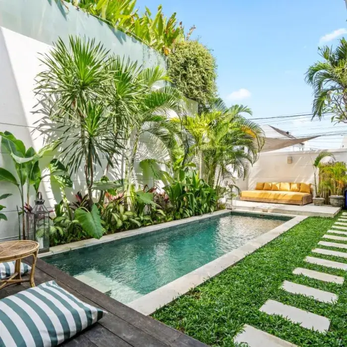 Nestled just minutes away from the picturesque Berawa Beach, our villa boasts a unique private beach area and a lush garden, creating a tranquil oasis for your stay. The highlight is our stunning pool, offering breathtaking views – a perfect spot to unwind and soak up the Balinese sun.